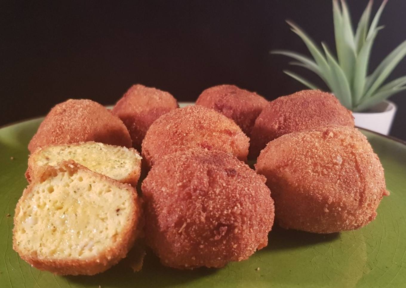 - Ahora haremos bolitas con la masa y las pasaremos por el pan rallado, luego por el huevo batido y de nuevo por el pan rallado. Y haremos lo mismo con toda la masa hasta terminarla.