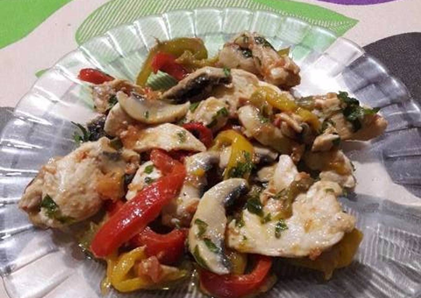 Pechuga de pollo con verduras al sartén