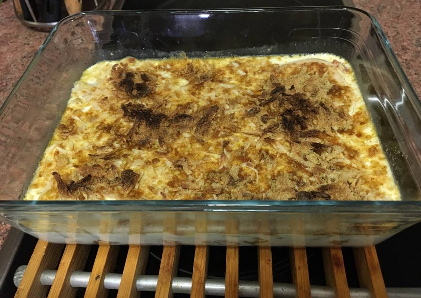 - Cubrimos con el brick de nata y el sobre de cebolla deshidratada y al horno.