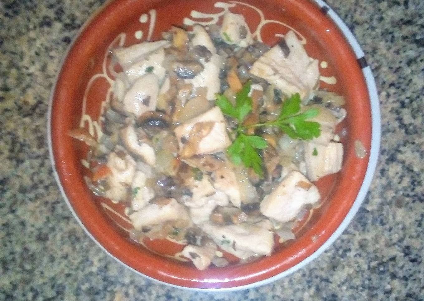 Salteao de pechuga de pollo con champiñones