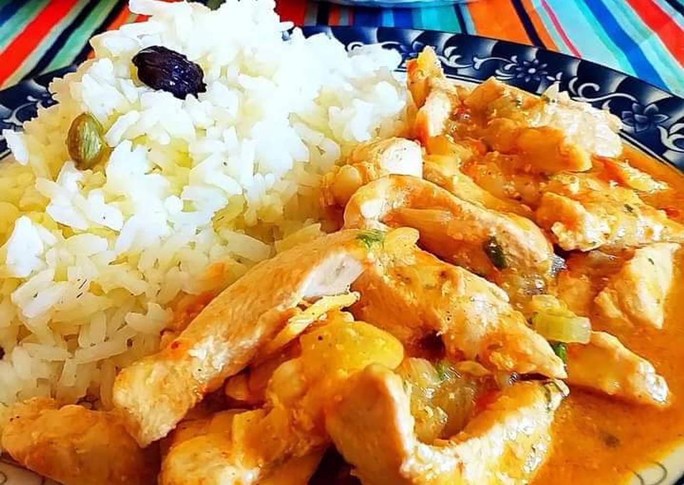 Tiras de pollo al curry tikka en salsa de leche de coco