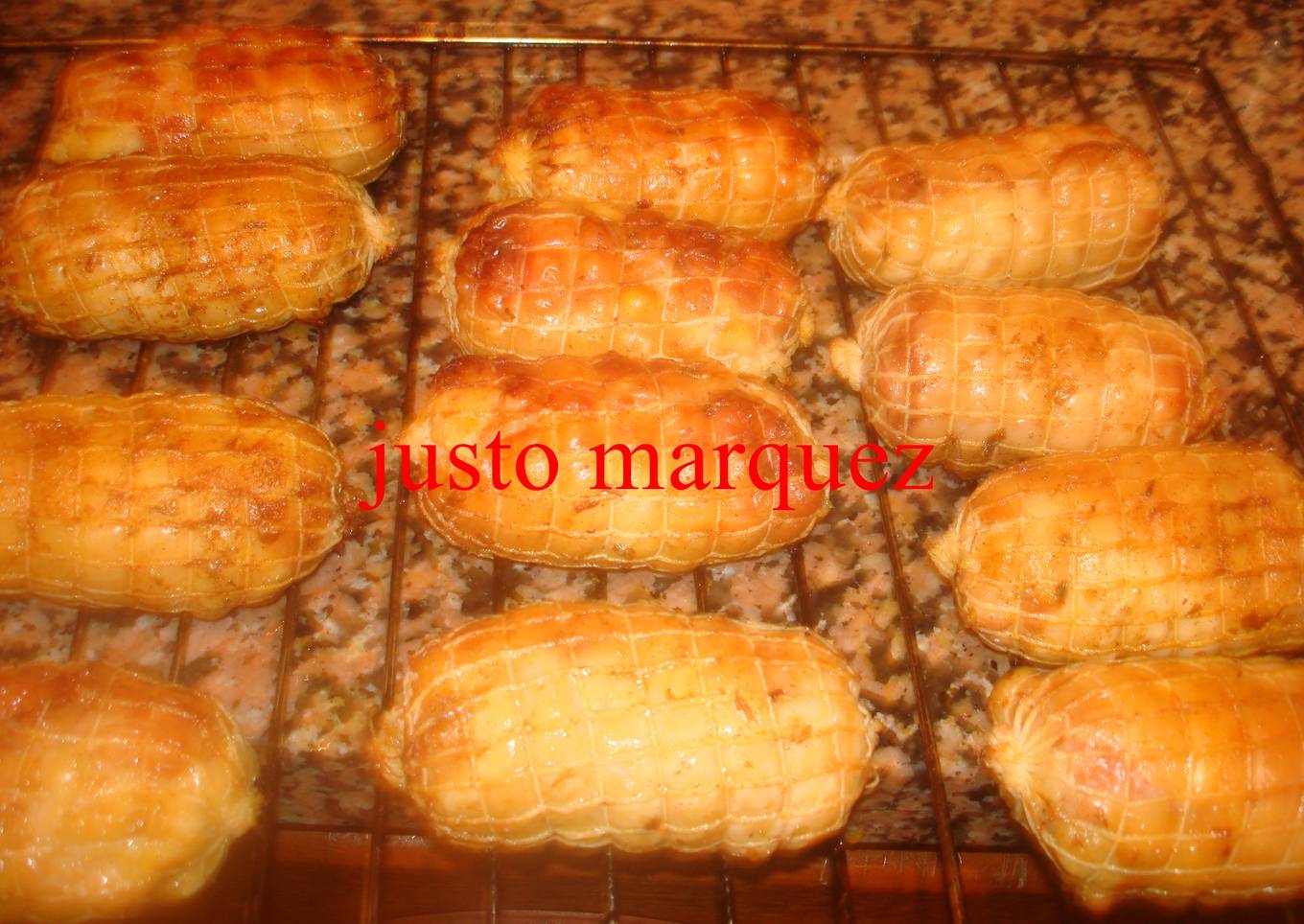 - Saca los muslos, quítales la cuerda y colócalos en una fuente, lo vas cortando en rodajas,